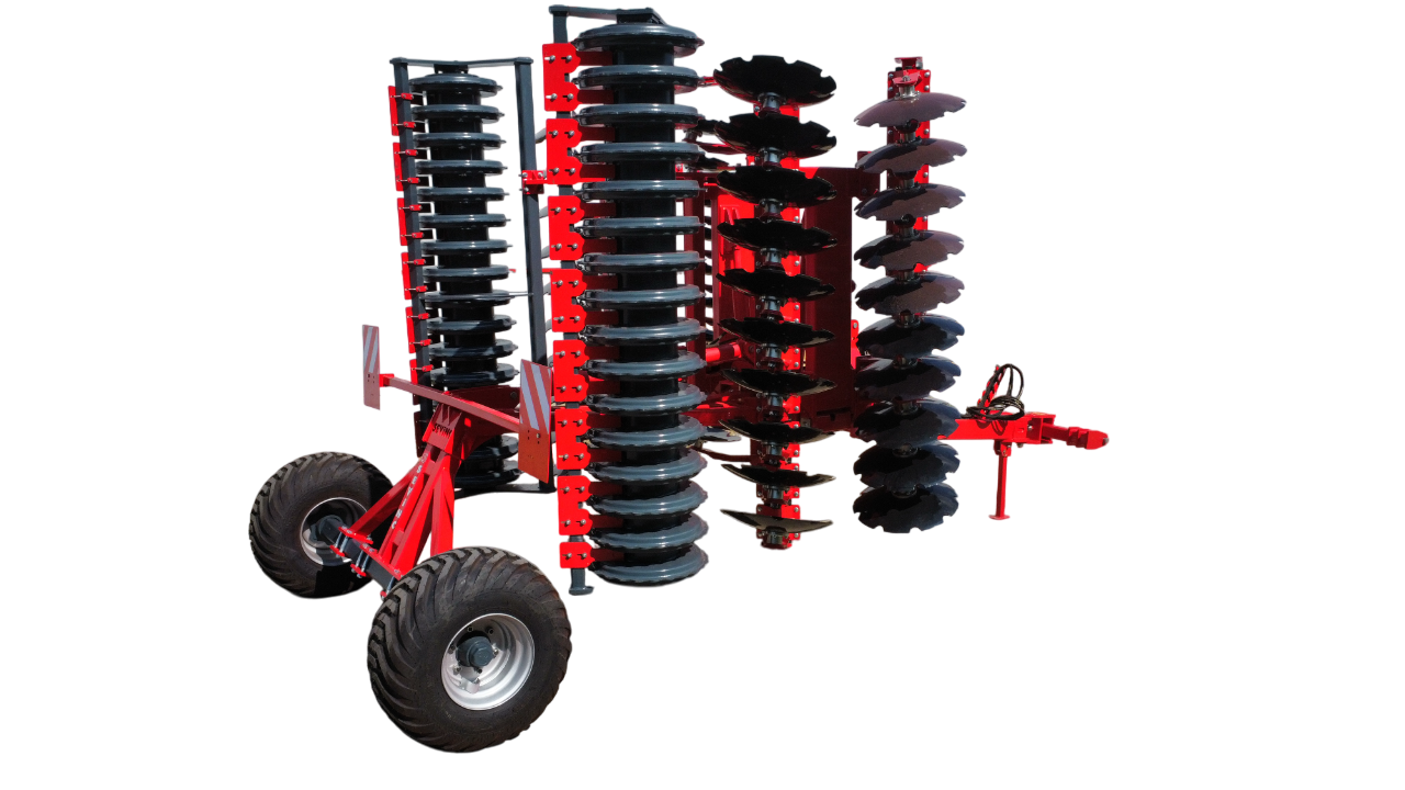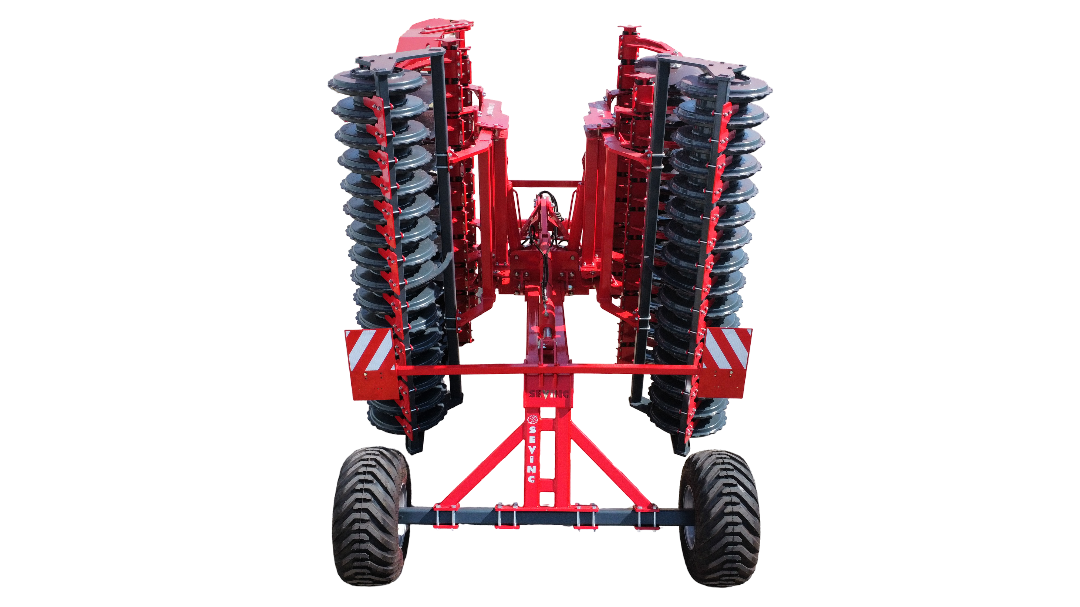 V şeklindeki iki disk sırası, mahsul ve yabancı ot artıklarını yüksek kapasitede işleyebilir. Ağır ve sıkıştırılmış topraklarda mükemmel sonuç sağlar. Disk sıraları arasındaki mesafe, döküntülerin tıkanmasına izin vermeden düzgün bir geçiş sağlar.